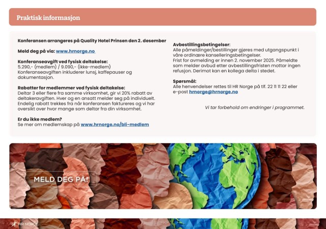 Deltar 3 eller flere fra samme virksomhet, gir vi 20% rabatt av e-post hrnorge@hrnorge.no