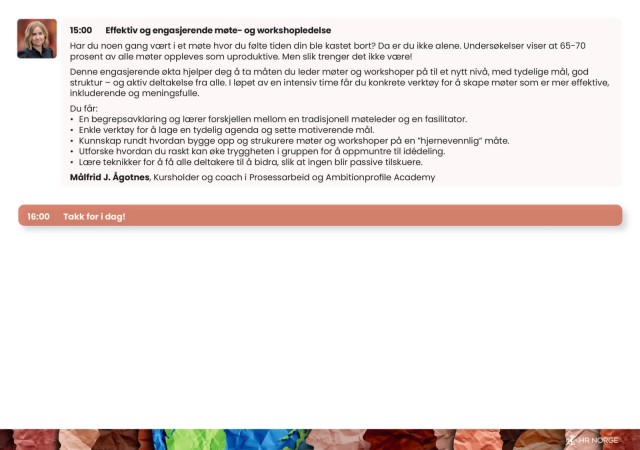 15:00 Effektiv og engasjerende møte- og workshopledelse
