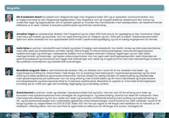 med spisskompetanse på sykefravær. Hun har lang erfaring med å bistå ledere og HR med å identifisere og implementere