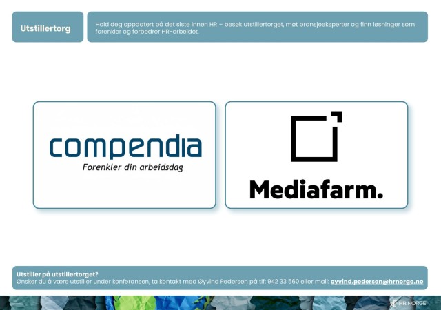 Ønsker du å være utstiller under konferansen, ta kontakt med Øyvind Pedersen på tlf: 942 33 560 eller mail: oyvind.pedersen@hrnorge.no